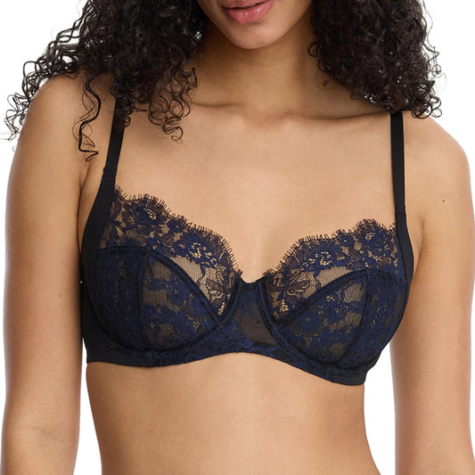 Entice Lace Side Support Balconette Bra - Black/Midnight