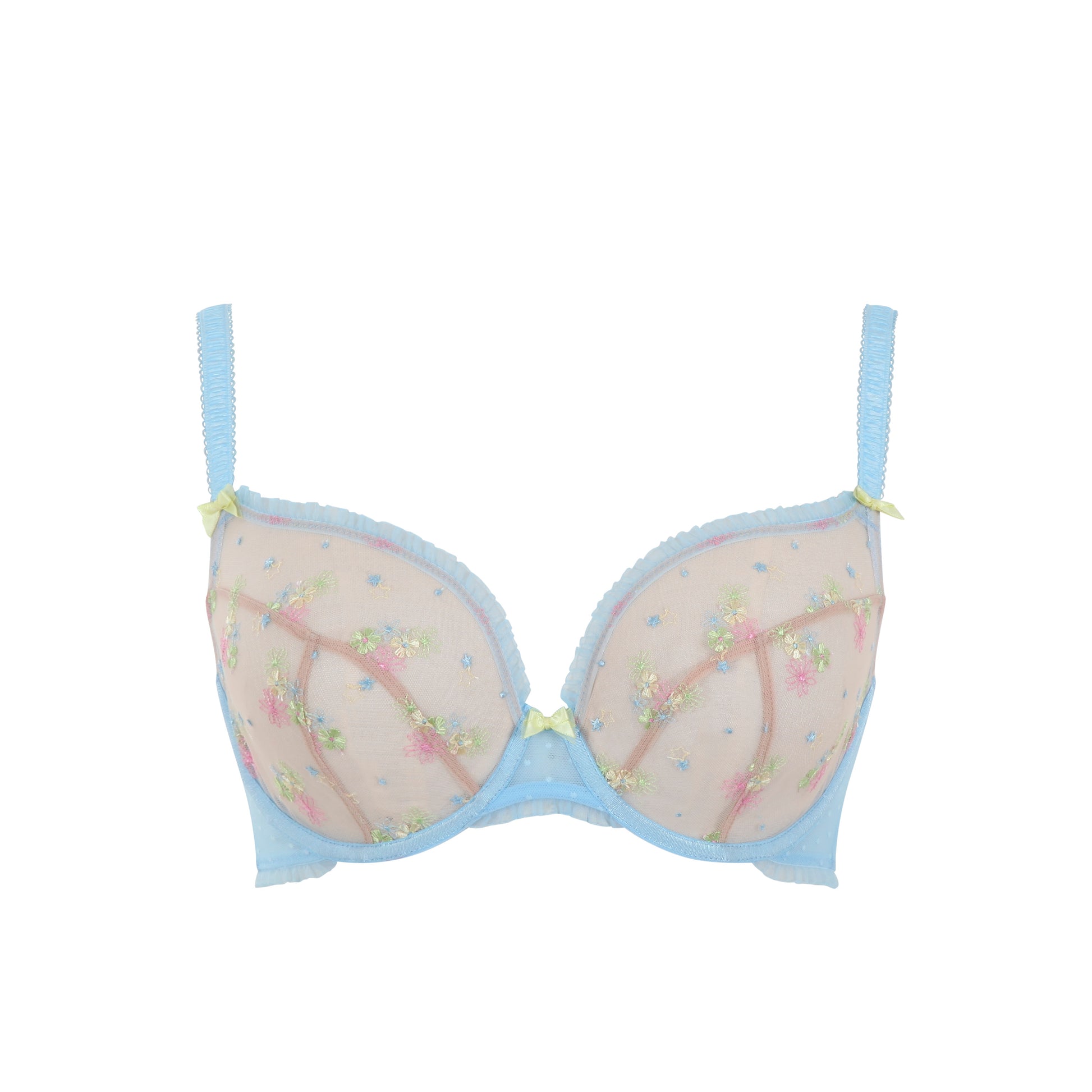 Astrid is a pretty plunge bra adorned with elegant floral accents, perfect for adding a touch of femininity to your lingerie collection.
