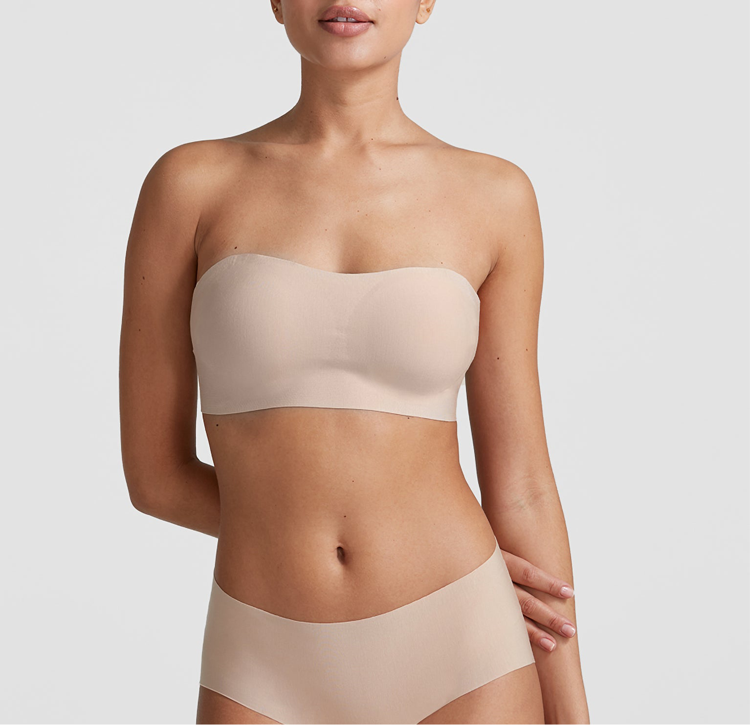 The soft support strapless bralette is made from a luxuriously soft Austrian modal blend that features bonded fusion technology, molded cup support and removable padding. Finished with raw-cut edges and an adjustable back closure for a barely-there fit and feel.
